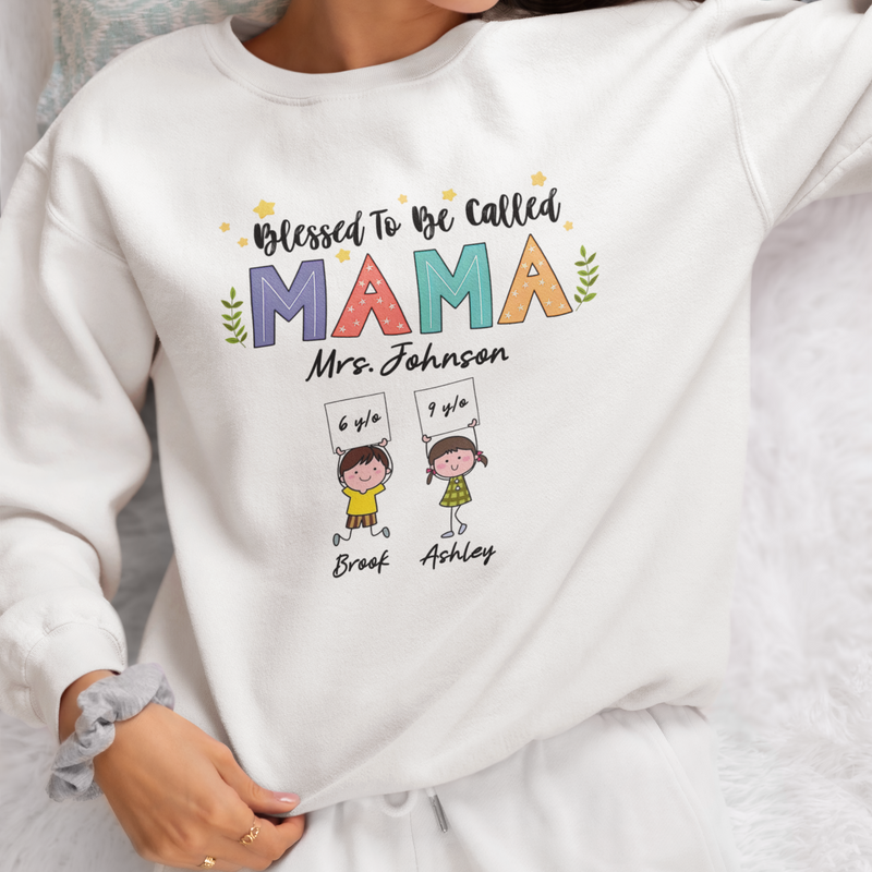 Blessed To Be Call Mama Shirt, Customized Mother's Day Shirt, Funny Kids Clipart Shirt, Personalized Kid's Name Shirt, Custom Mom Shirts For Women, Cute Mother's Day Mom Shirt, Personlized Gifts Custom Kid Shirt For Mom