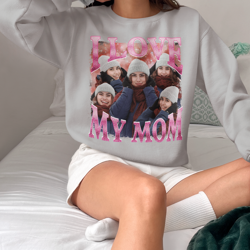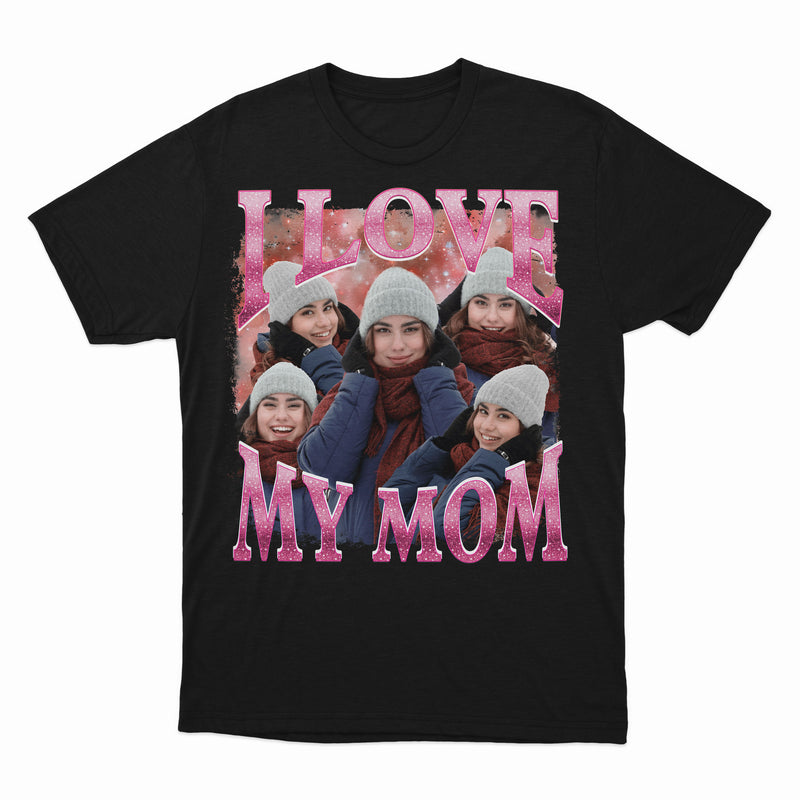 Custom Pink Background Shirt, I Love My Mom Shirt, Custom Mom Photo Shirt, Vintage Graphic 90s Tshirt, Collage Mom's Photo Shirt, Personalized Shirt For Mother's Day, Meaningful Mom's Shirt (Ver 1)