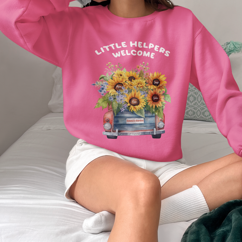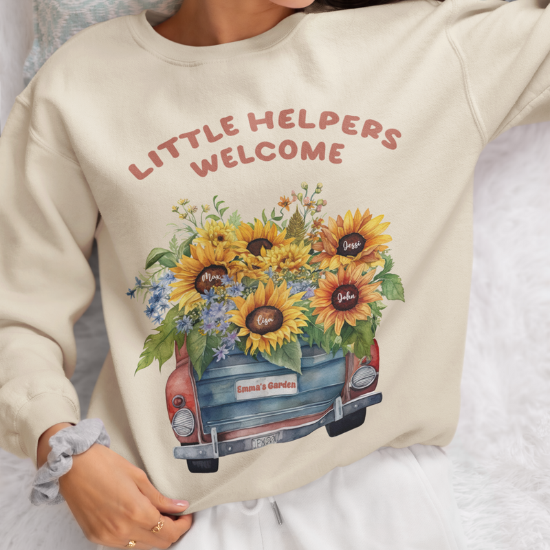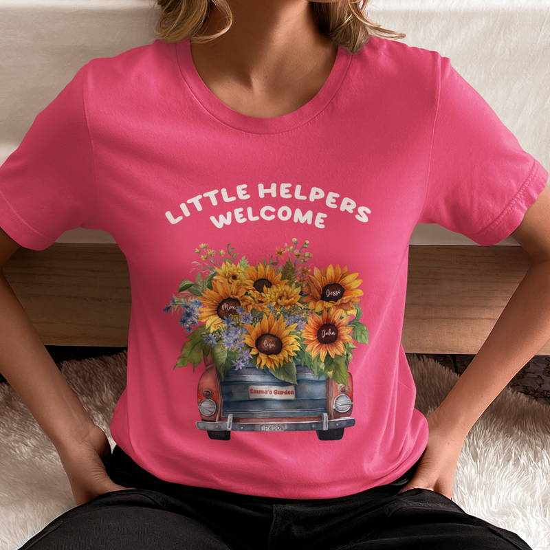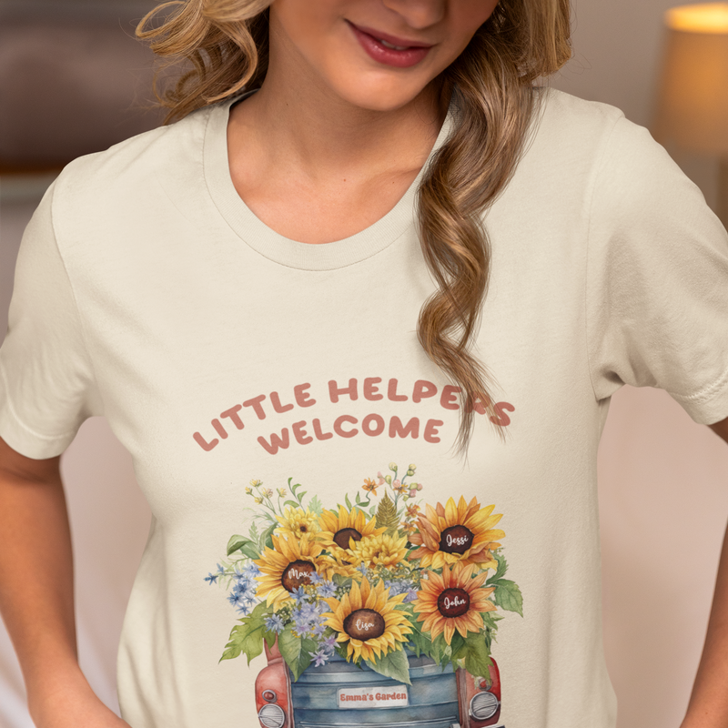 Little Helpers Welcome Shirt, Personalized Name Shirt, Mother's Day Shirt, Customized Mother's Day Shirt, Floral Truck Shirt, Sunflower Truck Shirt, Personalized Kid's Name Shirt, Sunflower Custom Name Shirt, Mama Baby Tee, Gift For Mom Mother's Day Ideas