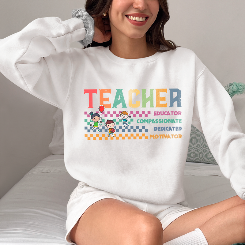 Teacher Educator Compassionate Dedicated Motivator Shirt, Checkerboard School Shirt, Teacher Appreciation Gift