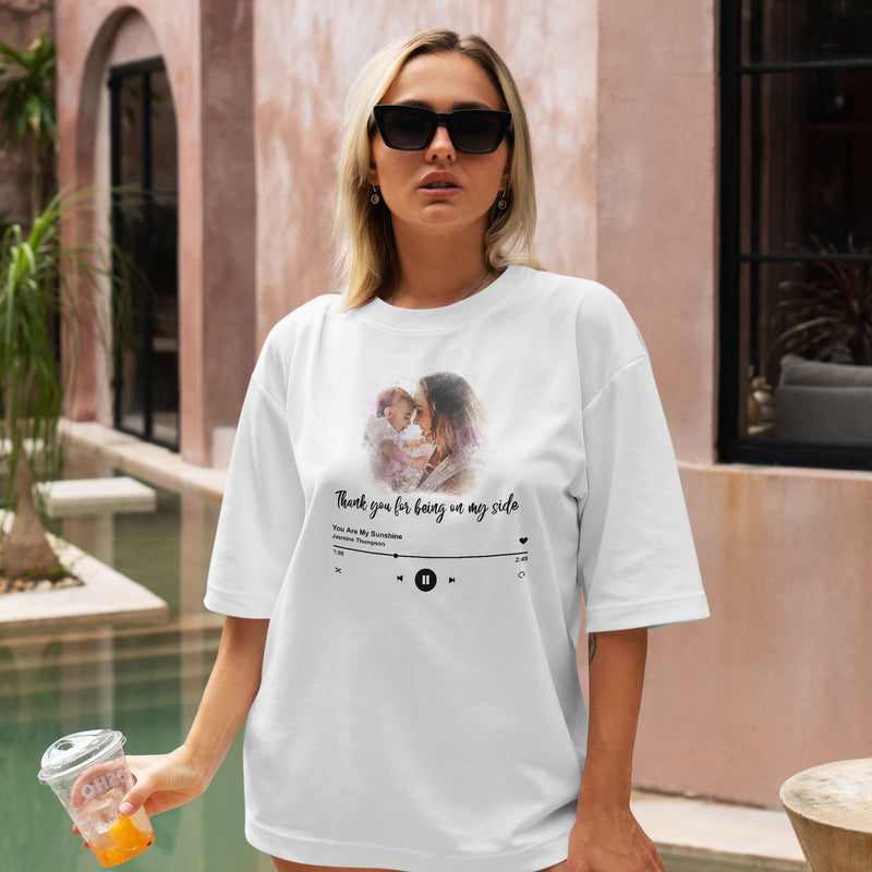 Thank You For Being On My Side Shirt, Mother's Day Lyrics Song Shirt, Custom Mother's Day Photo Shirt. Perosnalized Song Shirt, Favorite Song Shirt, Mom Shirt, Mother's Day Gift Shirt, Mama Baby Tee, Gift For Mom, Best Gift Idea Shirt For Mom