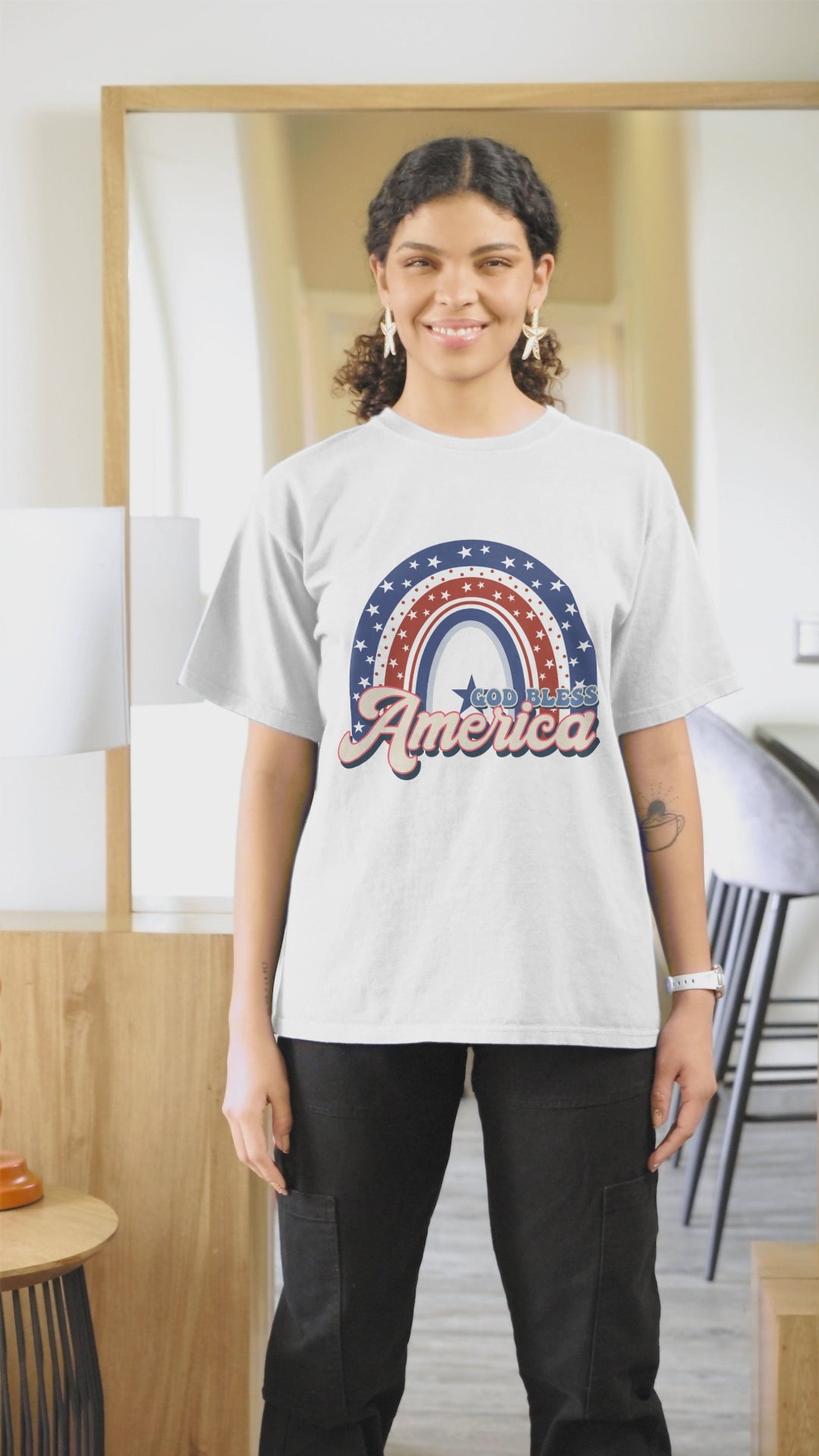 The item is proudly printed in the US, true to size and unisex fit.